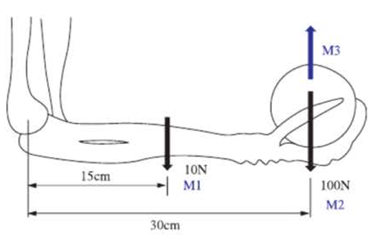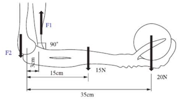F1(N) x 0.03(cm) = 15 x 0.15 + 20 x 0.35