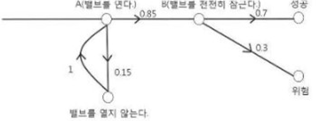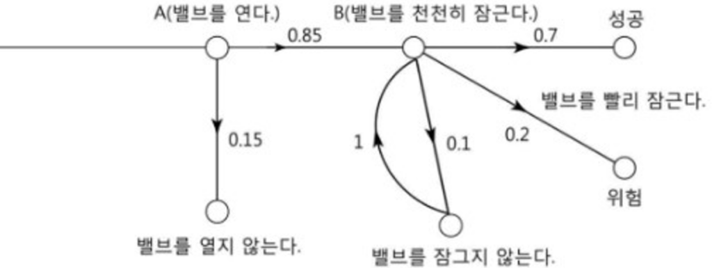 (문제) A(밸브를 연다)와 B(밸브를 천천히 잠근다)를 실시할 때 성공할 확률